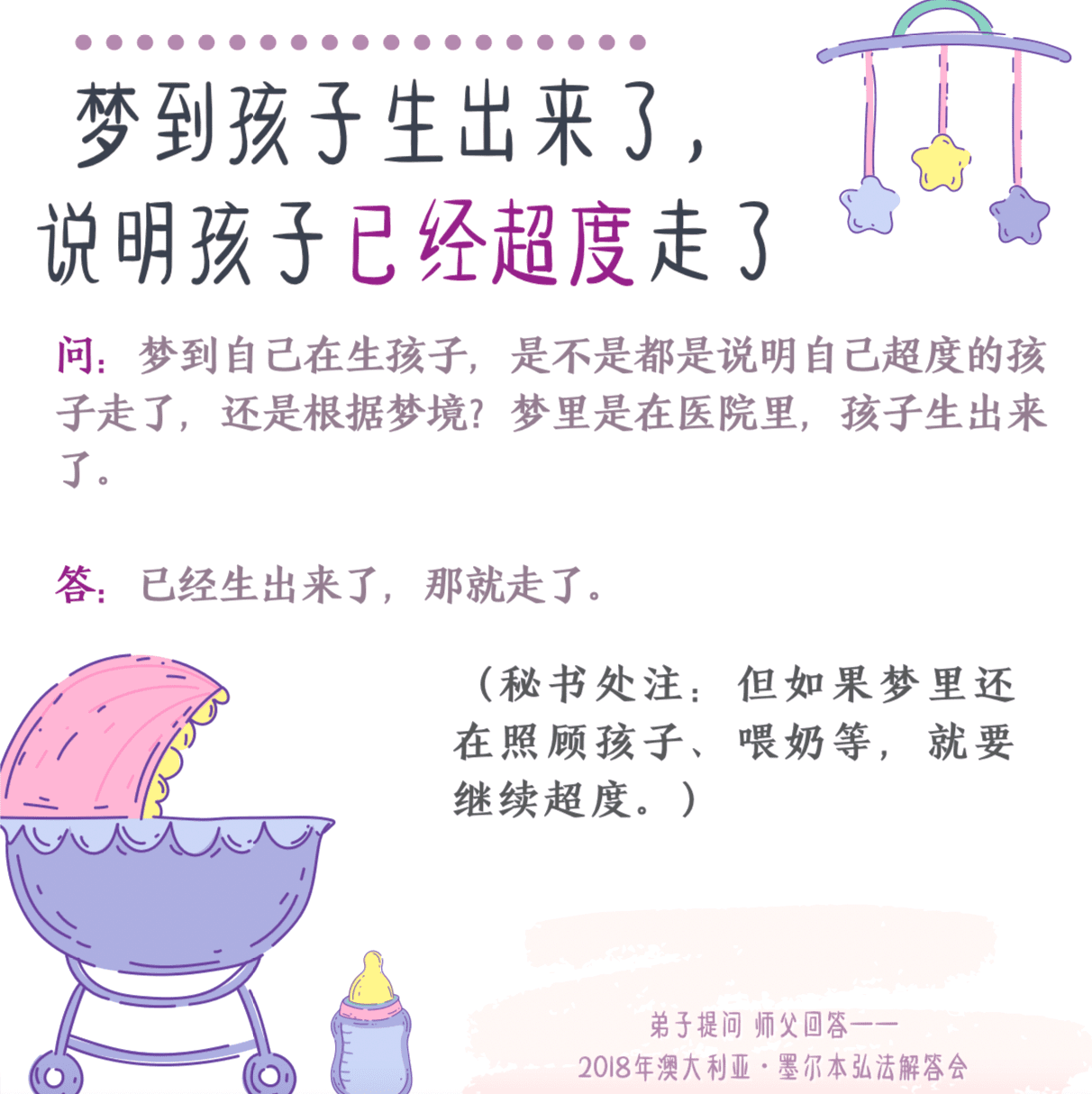 我之前梦到一个胖男孩,最近在超度梦到的这个孩子,但是许的数量还没念完,前天我同事(也在修行)她梦到我推个婴儿车,里面有个一两岁的小女孩,都会叫阿姨了,我想问问这是同一个孩子还是另一个孩子