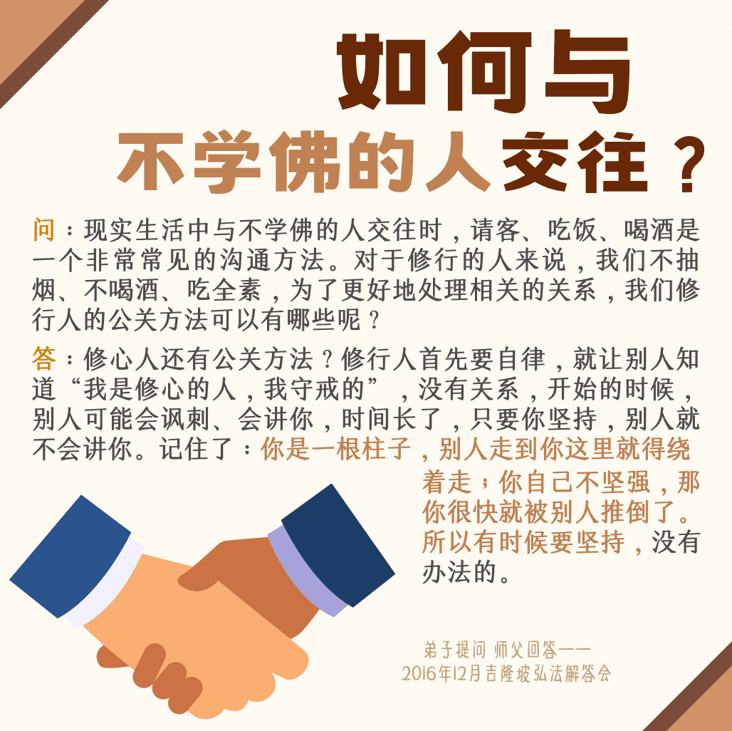 女听众:请问师父,怎么能克制不贪吃? 台长答:远离,不要看见啊,不要让自己看见吃的东西(哦)五根少接触六尘就好了(好的)你今天喜欢钱,就离钱远一点;你今天喜欢吃,你就离吃的东西远一点;你今天好色,就离帅哥美女远一点(好,要守戒)对啊,就是要守戒。不守戒,你还学什么佛啊?(对不起,师父)